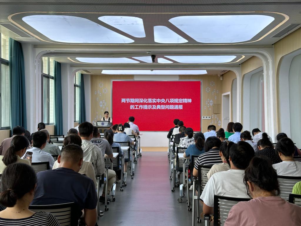 纪检委员李会进行了2024年中秋国庆两节期间深化落实中央八项规定精神的工作提示及典型问题通报。中秋节前,学院已通过网上平台进行了深化落实中央八项规定精神的工作提示,此次会议对相关典型问题进行了通报,进一步为全院教师敲响了警钟,提醒大家要时刻保持警惕,坚决抵制各种违规违纪行为,树立良好的师德师风和工作作风。