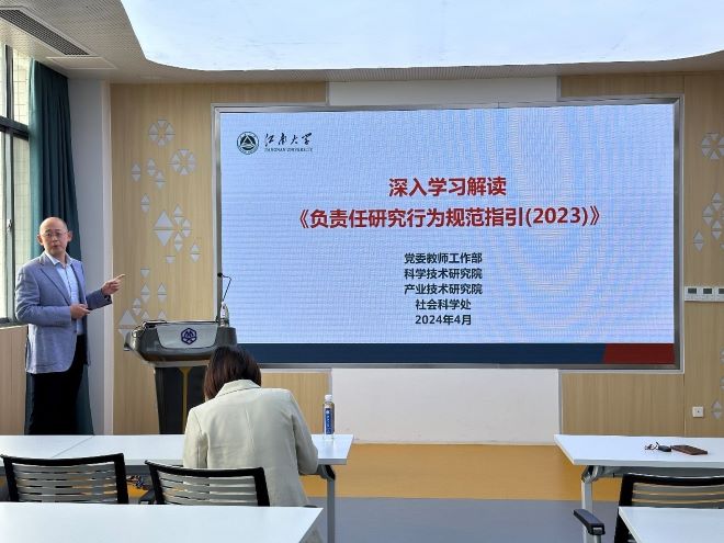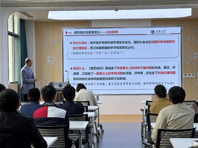 随后,杨子毅深入阐述了规范指引的主要内容。他强调,负责任的betway必威官方网站app是推动科技事业健康发展的重要保障,也是实现高水平科技自立自强的必然要求。作为科研人员,必须时刻牢记科研诚信与作风学风建设的重要性,以严谨的态度和扎实的工作作风,推动科研工作不断取得新的突破和进展。