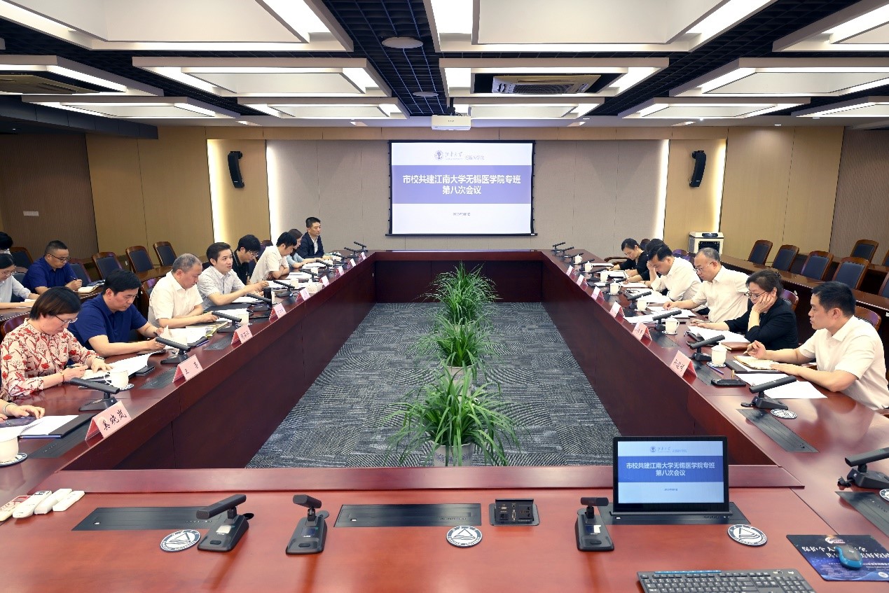 9月1日下午,市校共建江南大学无锡医学院专班第八次会议在江南大学行政楼B307会议室召开。江南大学党委常委、副校长马鑫,无锡市卫生健康委员会党委书记、主任笪学荣,副主任过忆,市政府办秘书七处处长朱渊渊,市财政局三级调研员缪燕青,市财政局社保处处长吴瑛,市卫健委科教处副处长孙道崎,江南大学市校共建合作办公室主任兼校长办公室副主任陈琳,附属医院院长高宇峰,附属中心医院院长冯宁翰,附属精神卫生中心党委书记周军伟,附属无锡五院院长鲍颖芳,附属妇产医院副院长卫蕾,附属儿童医院副院长游庆军,无锡医学院副院长奚晓岚及其他相关人员参加会议。会议由过忆主持。