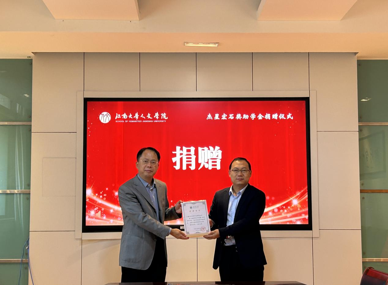 随后进行捐赠仪式,徐宏伟代表上海杰星生物科技有限公司向江南大学教育发展基金会赠送捐赠支票;任增亮为徐宏伟颁发捐赠证书。徐宏伟表示,众多校友一直非常关心和支持学院的发展建设和人才培养,学院需要社会资源,企业需要青年人才,希望未来上海杰星生物科技有限公司与人文学院建立更加亲密的合作关系,携手共进。