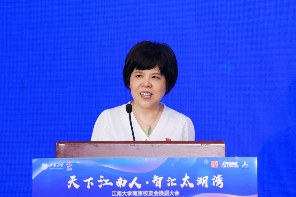 新当选会长徐虹(发酵80)讲话。她首先对母校的关心、对第二届南京校友会理事会的付出、广大南京校友的信任表示感谢。她代表新一届南京校友会理事会将进一步充实组织架构,加强校友专业分会建设;丰富活动内容,创新活动形式,打造校友交流平台;深化南京校友会“四大版块”活动,打造南京校友精神文化阵地;立足母校优势学科资源,深化校友企业交流合作。