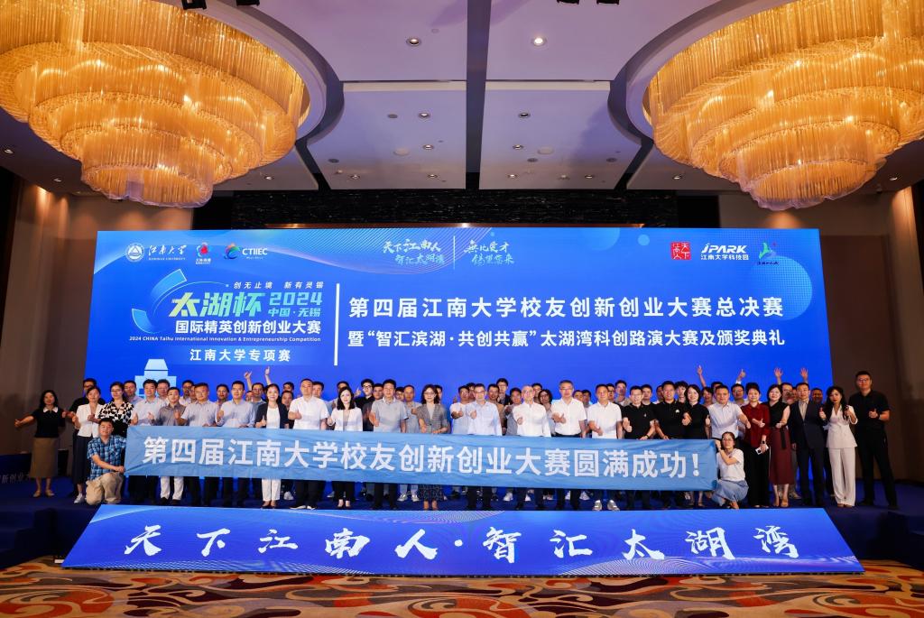 8月30日,第四届江南大学校友创新创业大赛总决赛暨2024中国无锡“太湖杯”国际精英创新创业大赛高校赛暨“智汇滨湖·共创共赢”太湖湾科创路演大赛颁奖典礼成功举办。无锡市委组织部副部长林茂松,无锡市滨湖区委副书记、区长李平,江南大学党委常委、副校长张影陆、倪松涛,无锡市科学技术局副局长朱华章,无锡市滨湖区委常委、组织部部长朱隽昉,无锡市科技创新服务中心主任肖栋,无锡市委组织部人才工作处处长袁晓雷;滨湖区委组织部、区科技局、区信息中心;江南大学校长办公室、市校共建办公室、学生工作处、团委、产业技术研究院、社会合作与校友联络处、资产管理经营有限公司、国家大学科技园等部门负责人;安徽校友会、南京校友会、浙江校友会、上海校友会、苏州校友会、无锡校友会、青年创业者协会相关负责人;布勒集团、华熙生物等产业界代表;中肃资本、无锡国联新创私募投资基金、无锡市创新投资集团、灵山慈善基金会、江苏银行等创投和金融机构代表参加了活动。